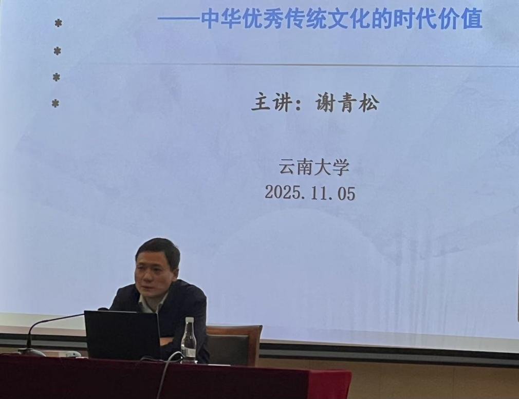 研究员、博士生导师、云南省国学研究会会长谢青松教授围绕中华优秀传统文化的时代价值层层递进,深入阐释理解、阐释与传播优秀传统文化对增强文化定力与自信的核心意义。他通过什么是经典?如何读经典?并结合儒道思想互补特性,从“进退自如、修己安人、穷通皆乐”三方面,探讨传统文化对个人生命品质、价值观的滋养及跨文化沟通中的独特作用。整场讲座紧扣黄播网站